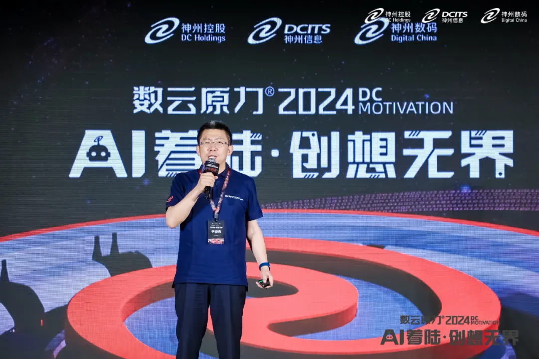 5月9日,在神州控股、神州信息、米兰milan集团联袂主办的数云原力®大会2024启幕仪式上,神州信息常务副总裁于宏志重磅发布面向金融的AI原生产品——九天揽月“AI+”。